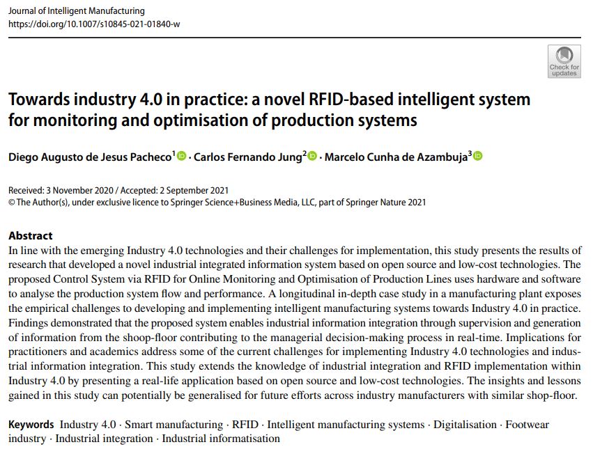 Novo artigo científico publicado! Fator de Impacto JCR 6.485 por Prof. Dr. Carlos Fernando Jung - terça-feira, 5 out. 2021, 03:17 Número de respostas: 0 Towards Industry 40 In Practice.pdf Link direto